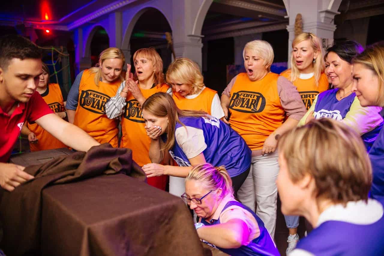 Главная роль в таком тимбилдинг-квесте отводится совместному решению интеллектуальных головоломок и различным двигательным упражнениям, для выполнения которых членам команды необходимо прилагать общие усилия.
